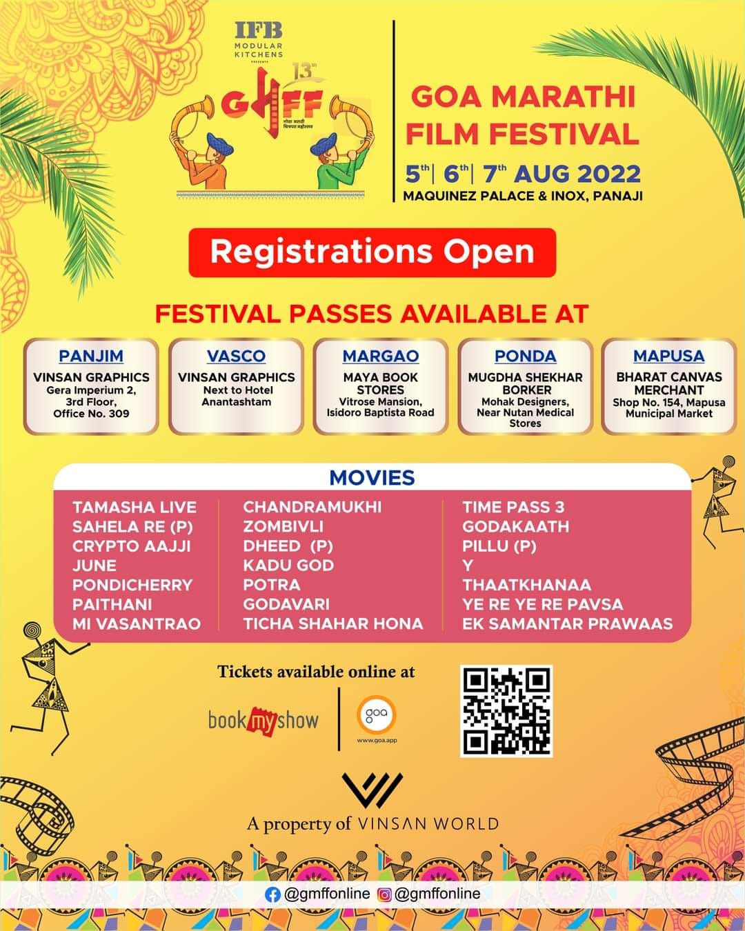 गोवा खबर:गोवा मराठी चित्रपट महोत्सवासाठी (GMFF) नोंदणी ऑनलाइन आणि राज्यातील निवडक ठिकाणी सुरू झाली आहे. GMFF हा देशातील सर्वात मोठ व अनेक वर्षे चालणारा विविध स्तरांमधील रसिक प्रेक्षकांचा उदंड प्रतिसाद लाभलेला मराठी चित्रपट महोत्सव आहे. यंदा दोन वर्षांच्या कालावधीनंतर, शीर्षक प्रायोजक आय एफ बी मोड्युलर किचन ह्यांच्या सहयोगाने 13 वा महोत्सव दिनांक 5, 6 आणि 7 ऑगस्ट 2022 रोजी INOX आणि मॅक्विनेझ पॅलेस येथे, पणजी येथे संपन्न होणार आहे.