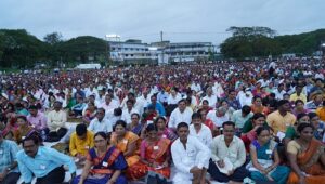 यातील युवक-युवतींची उपस्थिती लक्षणीय होती. विशेष म्हणजे पावसाची, चिखलाची तमा न बाळगता हजारों स्वाध्यायी पावसात मैदानावर बसून होते, कार्यक्रम सुरू व्हायच्या आधी पाऊस आला तरी कुठेही गडबड नाही, गोंधळ झाला नाही. स्वाध्याय परिवाराच्या प्रमुख धनश्रीदीदी तळवलकर यांचे व्यासपीठावर आगमन झाले आणि जमलेल्या स्वाध्यायींच्या आनंदाला उधाण आलं. दीदींचे गोवेकरांतर्फे स्वागत करण्यात आहे आणि त्यानंतर जवळपास साडेपाचशे युवक-युवतींनी ‘वंदी तुज गोमंतक अवघा पांडुरंग आत्मजा’ या नृत्यगीताद्वारे दीदींचे स्वागत केले. गोव्याचे मुख्यमंत्री डॉ. प्रमोद सावंत यांचे साधारण सहा च्या सुमारास आगमन झाले आणि मुख्यमंत्र्यांनी समस्त गोवा राज्यातर्फे धनश्रीदीदींचे स्वागत केले. दोन गोव्यातील स्वाध्यायी बंधूंनी प्रातिनिधिक स्वरूपात आपले मनोगत व्यक्त केले.