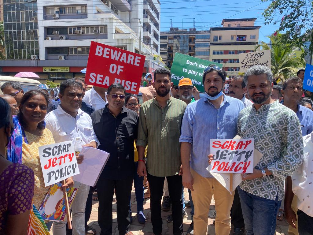 आप बाणावलीचे आमदार कॅप्टन व्हेंझी व्हिएगस, वेळ्ळीचे आमदार इंजिनियर क्रुझ सिल्वा आणि आप नेते अलिना सालढाणा, वाल्मिकी नाईक आणि सुरेल तिळवे, सोमवारी पाटो येथील नगर नियोजन कार्यालयासमोर निषेध व्यक्त केला.
