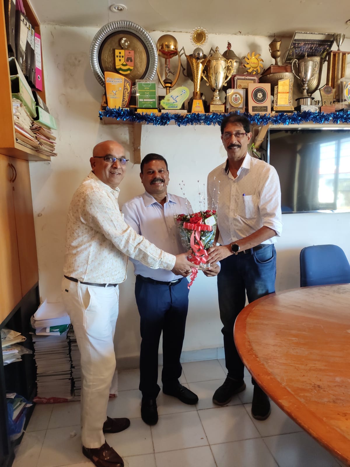 ‘मी त्यांना पूर्ण साहाय करण्याचे आश्वास दिले आहे. गोव्याच्या फुटबॉलला पुन्हा सुवर्ण दिवस दाखवणे हे आमचे एकमेव ध्येय आहे. संपूर्ण समितीचे मी अभिनंदन करतो. एकत्र काम करून राज्यातील फुटबॉलच्या विकासासाठी झटूया, असे शंखवाळकर बैठकीनंतर म्हणाले. जीएफडीसीने आपले सदस्य संजीव नागवेकर यांचेदेखील जीएफए कार्यकारी समितीत निवड झाल्याबद्दल अभिनंदन केले आहे. शंखवाळकर व आजगावकर यांनी नवीन जीएफए अध्यक्षांशी गोवन फुटबॉलला पुढे नेण्यासाठी आवश्यक उपायांवर प्राथमिक चर्चा केली.