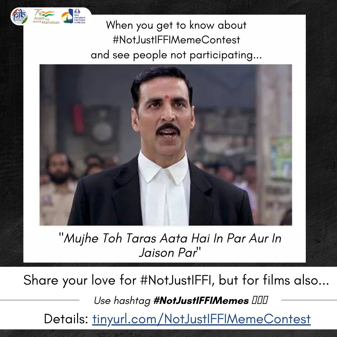 गोवा खबर : या स्पर्धेचा एकच नियम असणार आहे: एक उत्तम मीम म्हणजे विनोदी चित्रमय लघु संदेश अथवा अशा मीम्सची मालिका सामाजिक माध्यमांवर प्रसिद्ध करा, या मीमने लोकांना हसायला, आनंदाने उड्या मारायला, उडायला, एकमेकांना मिठ्या मारायला, आपापले त्रास विसरुन जायला आणि सर्वात महत्त्वाचे म्हणजे त्यांना चित्रपटांच्या आणि जीवनाच्या पुन्हा एकदा प्रेमात पडायला लावले पाहिजे.