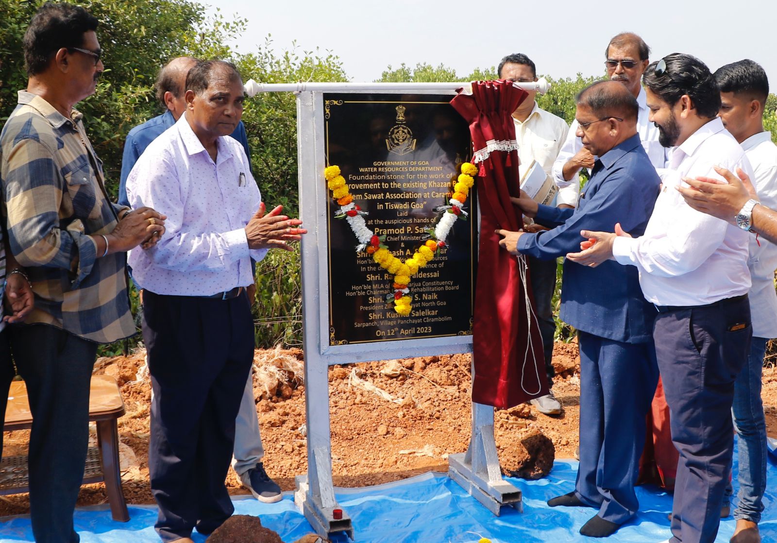 गोवा खबर: जलस्त्रोतमंत्री सुभाष शिरोडकर व कुंभारजुवाचे आमदार राजेश फळदेसाई यांनी बुधवारी तिसवाडी तालुक्यातील करमळी येथे सध्या अस्तित्वात असलेल्या तळे सावत असोसिएशनच्या खाजन बांधाच्या सुधारणा कामाची पायाभरणी केली.