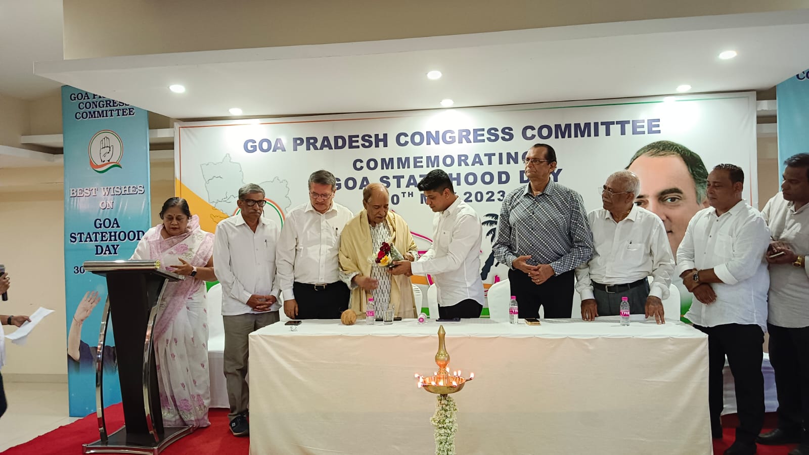 यावेळी काँग्रेस नेत्यांनी एदुआर्द फालेरो यांना घटकराज्याचा दर्जा मिळवून देण्यासाठी दिलेल्या योगदानाबद्दल त्यांचा सत्कार केला.