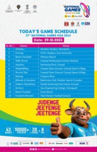National Game Schedule for October 29, 2023 #NationalGamesGoa2023 #Goa