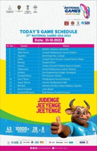 #ADVT 37 व्या राष्ट्रीय क्रीडा स्पर्धेचे 31 ऑक्टोबर 2023 चे वेळापत्रक..