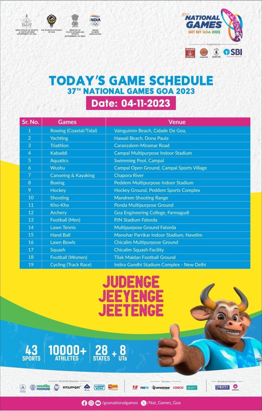 #ADVT 37 व्या राष्ट्रीय क्रीडा स्पर्धेच्या 4 नोव्हेंबर 2023 चे वेळापत्रक