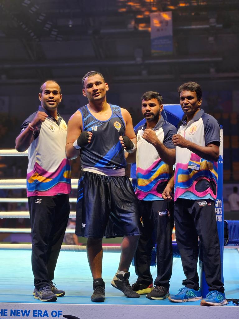 Goa Khabar:On the fifth day of the ongoing boxing matches of the 37th National Games, seven boxers from Goa competed in the quarterfinals of their respective weight categories. Five of them punched their way into the semi-finals, while two lost their bouts.