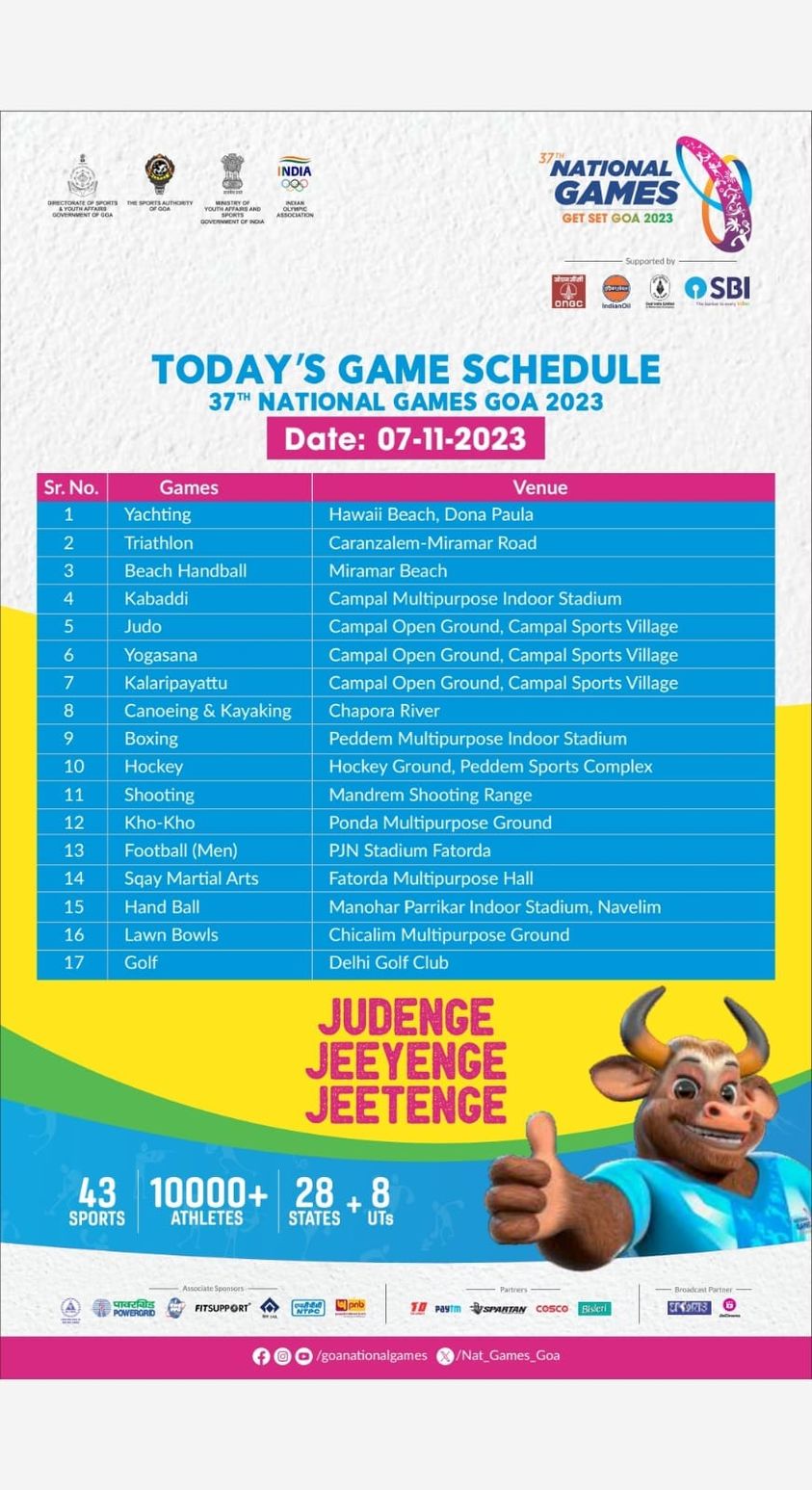 #ADVT 37 व्या राष्ट्रीय क्रीडा स्पर्धेच्या 7 नोव्हेंबर 2023 चे वेळापत्रक