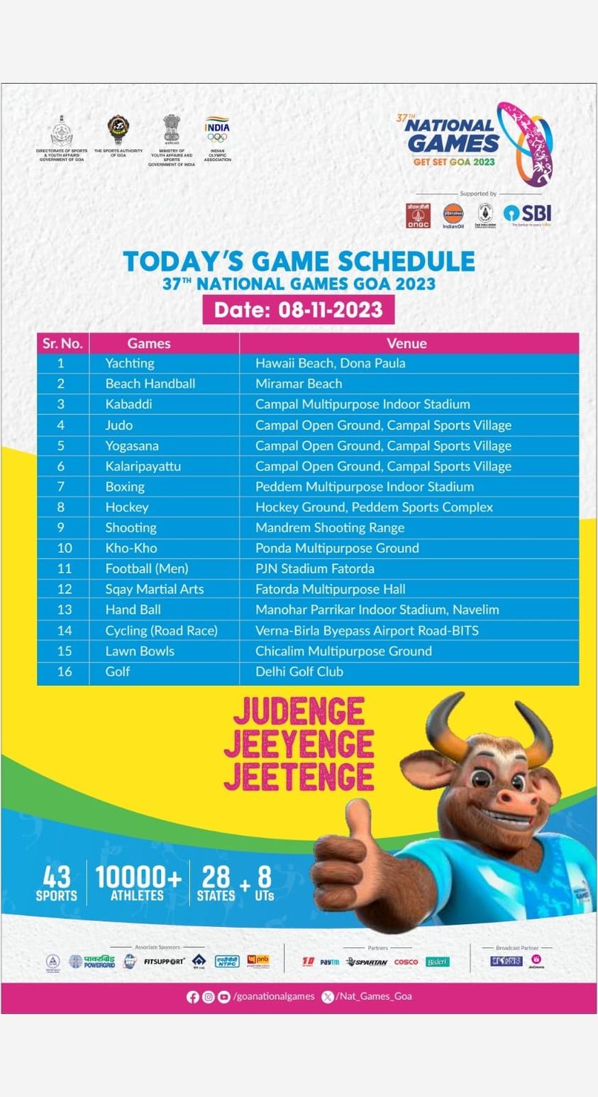 #ADVT 37 व्या राष्ट्रीय क्रीडा स्पर्धेच्या 8 नोव्हेंबर 2023 चे वेळापत्रक