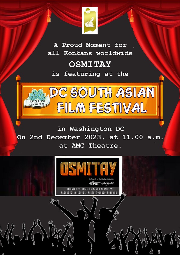 Goa Khabar:The Konkani Film ‘Osmitay’, Produced by Mandd Sobhann, will be Screened at AMC Theatre in America’s Washington DC on December 2nd at 11 am during the DC South Asian Film Festival – 2023.