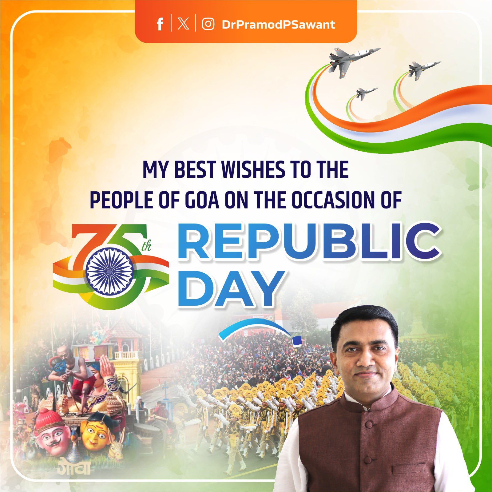 जाहिरात मुख्यमंत्री प्रमोद सावंत यांच्यातर्फे तमाम जनतेला प्रजासत्ताक दिवसाच्या हार्दिक शुभेच्छा! Dr. Pramod Sawant Published 2 years ago on January 26, 2024 By Devendra Walavalkar Spread the love मुख्यमंत्री प्रमोद सावंत यांच्यातर्फे तमाम जनतेला प्रजासत्ताक दिवसाच्या हार्दिक शुभेच्छा! Dr. Pramod Sawant Related Topics:Featured Up Next आरोग्यमंत्री विश्वजीत राणे यांच्यातर्फे गोमंतकीयांसह देशवासीयांना प्रजासत्ताक दिवसाच्या हार्दिक शुभेच्छा! Vishwajit P RANE Don't Miss मुख्यमंत्री प्रमोद सावंत यांच्यातर्फे तमाम जनतेला प्रजासत्ताक दिवसाच्या हार्दिक शुभेच्छा! Dr. Pramod Sawant Devendra Walavalkar Continue Reading You may like Guardian Angel SC Stun Goa Police with Hard-Fought Victory कोकणातील गोड्या पाण्यातील मासेमारीसाठी जलाशय आणि अमृत सरोवरांचा वापर राष्ट्रपतींची अयोध्या येथील श्री राम जन्मभूमी मंदिराला भेट; रामलल्लाचे दर्शन मुंबई सीमा शुल्क विभागाच्या एअर इंटेलिजन्स युनिटने छत्रपती शिवाजी महाराज आंतरराष्ट्रीय विमानतळावर अंमली पदार्थांच्या तस्करीचे प्रयत्न हाणून पाडले गोव्यासाठी हवामान इशारा : आज वादळी वाऱ्यासह पावसाची शक्यता AAP’s Geetesh Naik Appeals Bhandari Samaj To Vote For Someone Who Understands Struggles of a Common Man, and Reject Familyraj