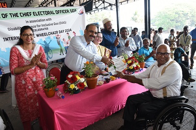 गोवा खबर:गोवा मुख्य निवडणूक अधिकारी कार्यालयाने, डिजेबिलीटी अलायन्स इल्क्लुजीव गोवा यांच्या सहकार्याने आज कदंब बसस्थानक, मडगाव येथे आंतरराष्ट्रीय व्हीलचेअर दिवस तथा मतदार जागृती कार्यक्रमाचे आयोजन केले होते.