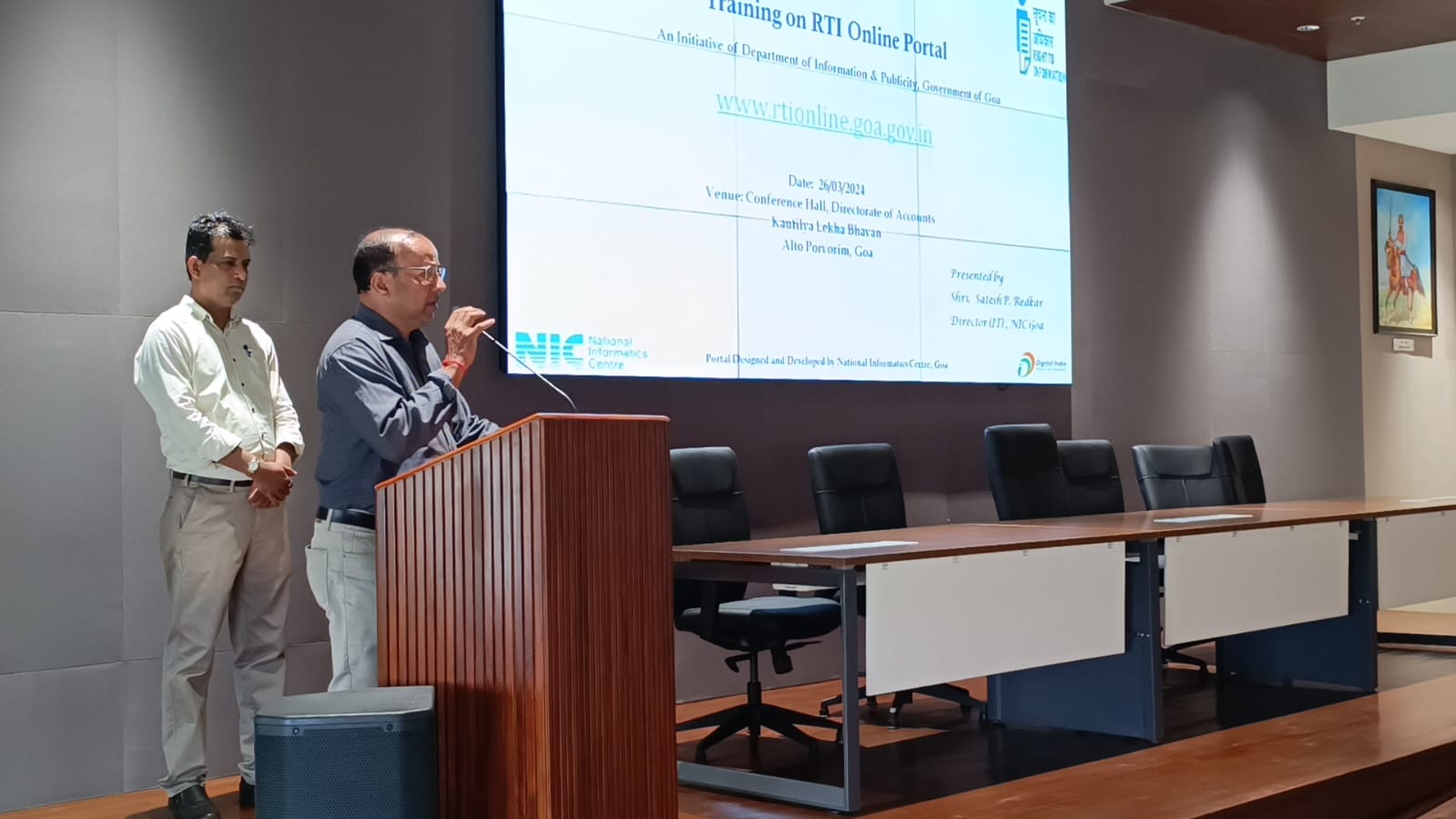 एनआयसीचे तांत्रिक संचालक श्री. सतेश रेडकर यांनी ऑनलाइन आरटीआय पोर्टलबद्दल माहिती दिली आणि प्रशिक्षण कार्यक्रमातील सुमारे २०० सहभागींना नियम आणि कायदे, प्रक्रिया, वैशिष्ट्ये इत्यादींशी संबंधित विविध पैलूंबद्दल माहिती दिली.