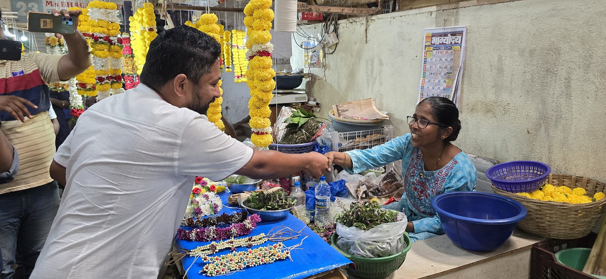 गोवा खबर:राज्यात लोकसभा निवडणुकीची रणधुमाळी सुरू असून, रेव्होलुशनरी गोवन्स पक्षाने सुद्धा जोर धरला असून, पहिल्या टप्प्यातील घरोघरी प्रचार थोड्याच जावी राहिला असून, मार्केटमध्ये जाऊन हस्तांदोलन करून दुसऱ्या टप्प्यातील प्रचार सुरू आहे. काल रविवारी सुद्धा उत्तर गोव्याचे लोकसभा उमेदवार मनोज परब यांनी आपल्या शेकडो समर्थकांसह पणजी मार्केट मध्ये आपला प्रचार करून, लोकांना ह्यावेळी बदल घडून आणून गोवेकरांचा आवाज दिल्लीत पोहचविण्याची विनंती केली.