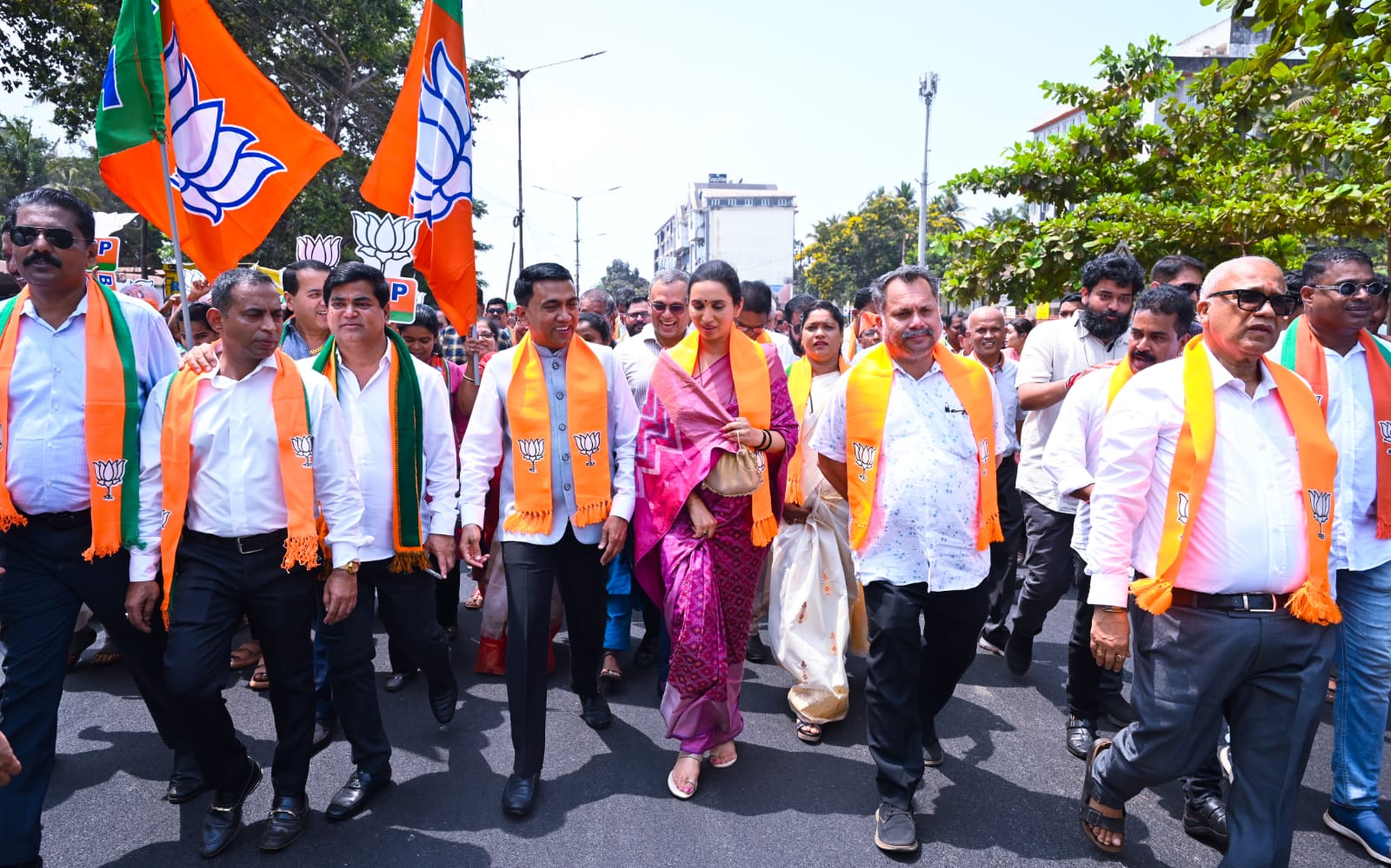 अर्ज सादर करण्यापूर्वी भाजपाचे मंत्री, आमदार, पदाधिकारी, कार्यकर्ते तसेच मोठ्या संख्येने उपस्थित हितचिंतकांनी सौ. धेंपो यांना पाठिंबा देण्यासाठी भाजपा कार्यालयाजवळ हजेरी लावली. यावेळी कार्यकर्त्यांनी वंदे मातरम, भारत माता की जय, भारतीय जनता पार्टीचा विजय असो, अबकी बार 400 पार, पल्लवी धेंपो तुम आगे बढो, हम तुम्हारे साथ है आदी विविध घोषणांनी परिसर दणाणून सोडला.