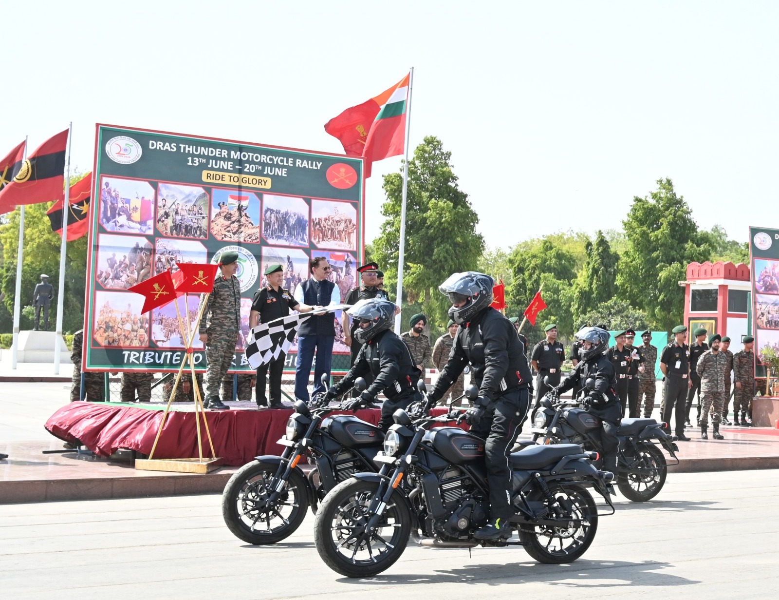 मोटारसायकल रॅलीचा समारोप 20 जून 2024 रोजी द्रास येथील ऐतिहासिक कारगिल युद्ध स्मारक येथे होईल. 25 वर्षांपूर्वी याच दिवशी, भारतीय सैन्याने पॉइंट 5140 काबीज करून इतिहासात एक अमिट ठसा उमटवला. सुभेदार मेहर सिंग, वीर चक्र आणि नायब सुभेदार केवल कुमार, सेना पदक, यांनी शत्रूविरूद्ध अफाट धैर्य आणि शौर्य दाखवले होते आणि कारगिल युद्धादरम्यान मोक्याची शिखरे काबीज करण्यात सक्रिय सहभाग घेतला होता.