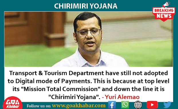 गोवा खबर शोकेस Chirimiri Yojana Published 2 years ago on July 23, 2024 By Devendra Walavalkar Spread the love Transport & Tourism Department have still not adopted to Digital mode of Payments. This is because at top level its “Mission Total Commission” and down the line it is “Chirimiri Yojana”. – Yuri Alemao Related Topics: Up Next अभिनव बिंद्राला मिळणार ‘ऑलिम्पिक ऑर्डर’ पुरस्कार Don't Miss GOVT WILL BLOW AWAY SOON Devendra Walavalkar Continue Reading You may like