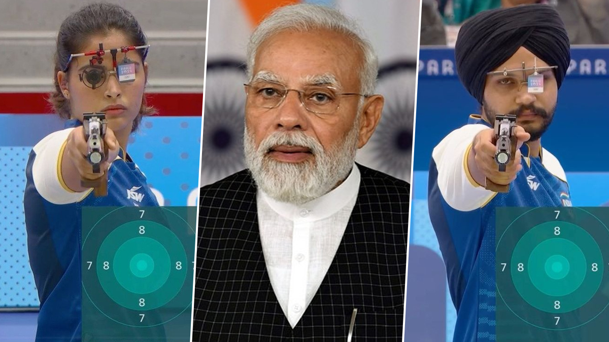 पंतप्रधानांनी X या समाज माध्यमावर पोस्ट केले आहे, आमच्या नेमबाजांचा अभिमान वाटतो! #Olympics मधील 10 मीटर एअर पिस्टल मिश्र सांघिक स्पर्धेत कांस्यपदक जिंकल्याबद्दल मनू भाकर आणि सरबज्योत सिंह यांचे अभिनंदन. या दोघांनी उत्तम कौशल्य आणि संघ भावनेचे प्रदर्शन केले आहे.  भारताला अत्यंत आनंद झाला आहे. मनूसाठी, हे तिचे सलग दुसरे ऑलिम्पिक पदक आहे, जे तिची सातत्यपूर्ण उत्कृष्टता आणि समर्पण दर्शवते.