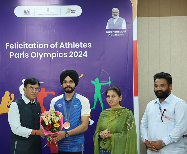 युवा व्यवहार आणि क्रीडा मंत्रालयाच्या रोख पुरस्कार योजनेचा भाग म्हणून डॉ. मांडविया यांनी 22.5 लाख रुपयांचा धनादेश सरबज्योत सिंग याला प्रदान केला.या कार्यक्रमात अर्जुन बाबुता, रमिता जिंदाल, रिदम सांगवान, संदीप सिंग आणि अर्जुन सिंग चीमा तसेच त्यांचे प्रशिक्षक सुमा शिरूर, समरेश जंग आणि सरबज्योतचे वैयक्तिक प्रशिक्षक अभिषेक राणा यांच्या योगदानाचीही दखल घेण्यात आली. उल्लेखनीय कामगिरी करणाऱ्या अर्जुन बाबुताचे पदक थोडक्यात हुकले आणि पुरुषांच्या 10 मीटर एअर रायफल स्पर्धेत तो चौथ्या क्रमांकावर राहिला.