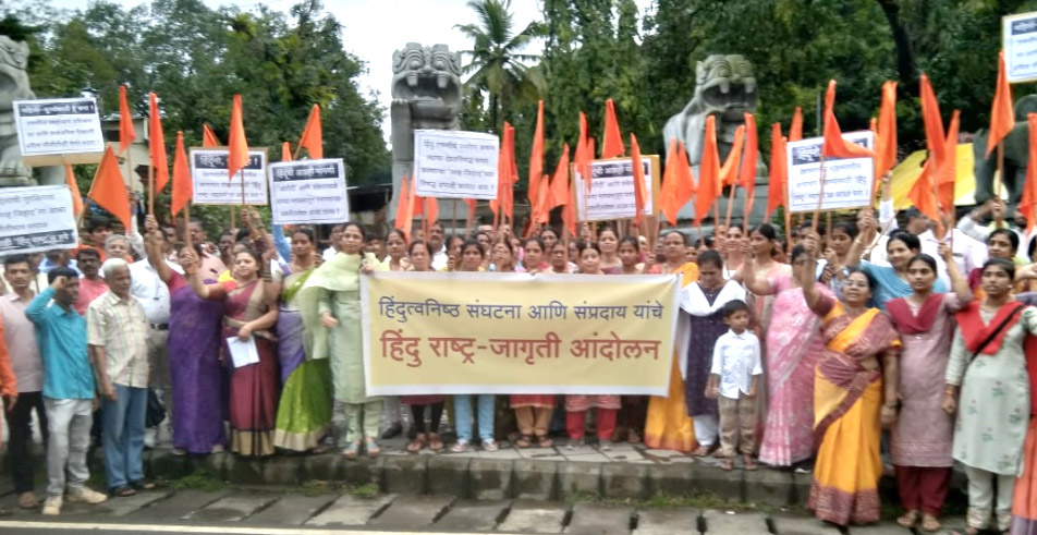 गोवा खबर : अल्पवयीन मुली, युवती आणि महिलांवरील अत्याचारांविरुद्ध कठोर कायद्याची तरतूद करावी तसेच लव्ह जिहाद विरोधी कायदा लागू करावा, अशी मागणी काल (29 रोजी) हिंदू जनजागृती समितीने फोंडा येथील क्रांती मैदानात आयोजित केलेल्या निदर्शनांद्वारे केली.