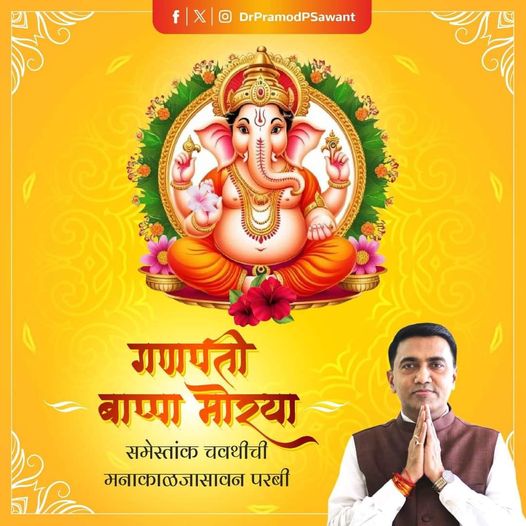 बुद्धी , सैम, संस्कृताय, हांच्या सांगातान पर्यावरण आनी एकनिष्ठेचो संदेश दिवपी असो आमचो गणेश चतुर्थीचो उत्सव. ह्या मंगल सुवाळ्यानिमितान येवपी देव श्री गणपती तुमच्या घरांत सुख, शांती आनी समृद्धी घेवन येंव अशी प्रार्थना करता. समेस्तांक चवथीची मनाकाळजासावन परबी: Dr. Pramod Sawant