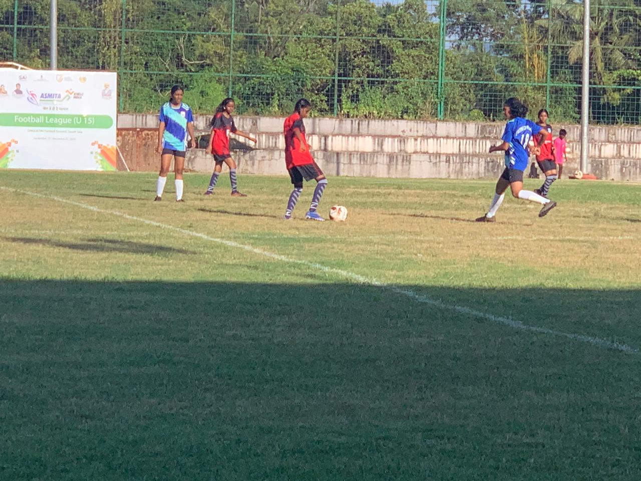 Goa Khabar : Sirvodem Sports Club stormed to a dominant 9-0 victory over Sporting Club De Rumdamol in the U-15 Asmita League at Sinquetim Sports Complex on Thursday. Salonee Barretto led the charge with a remarkable four-goal haul, while Shalaika Rodrigues and Annalee Fernandes each netted twice. Liora Fernandes added her name to the scoresheet in a comprehensive win.