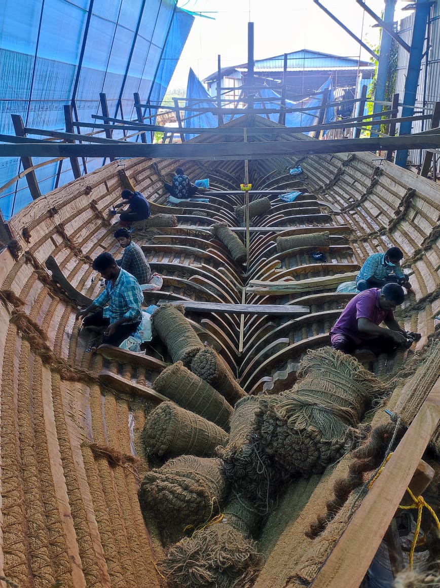 The stitched ship is being built by the father-son duo of Ratnakar and Prathmesh Dandekar who are considered to be among India’s premier boat builders. Babu Shankaran, who was involved in the Oman government’s stitched ship project is also part of this project.