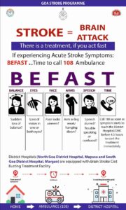 Starting treatment of Stroke in the first 4.5 hours of symptom onset (Golden hours) can help reverse the symptoms and decrease loss of neurons in some strokes. “Hence it is important to rush these patients to a hospital equipped with the necessary facilities Goa Medical College, South and North Goa District hospitals are well equipped to handle stroke cases,” Dr. Ferreira adds.
