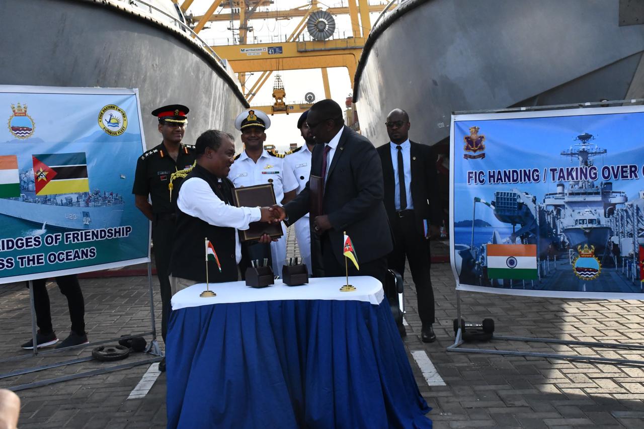 गोवा खबर:हिंद महासागर प्रदेशात मैत्रीपूर्ण राष्ट्रांसोबत क्षमता वाढवण्याच्या उपक्रमाचा एक भाग म्हणून, केंद्र सरकारने 8 नोव्हेंबर 2024 रोजी मोझांबिक सरकारला दोन वॉटर – जेट प्रॉपल्ड फास्ट इंटरसेप्टर क्राफ्ट भेट म्हणून दिले. फास्ट इंटरसेप्टर क्राफ्ट भारतातून आयएनएस घडियालमधून पाठवण्यात आले.