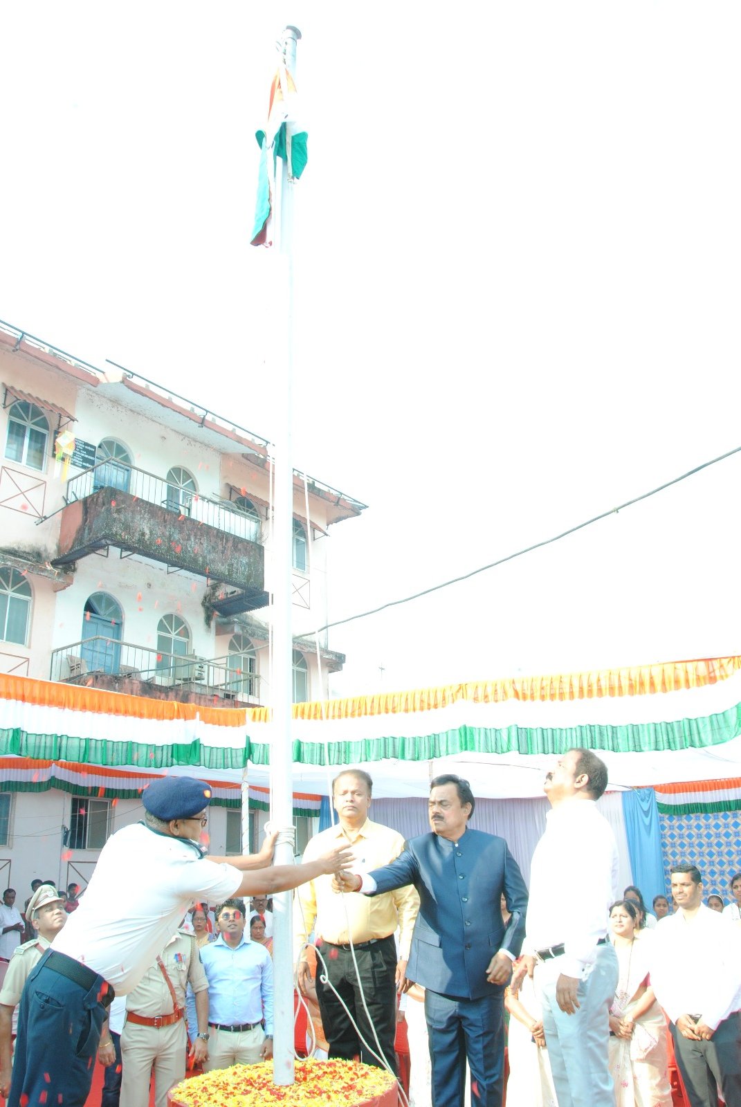 गोवा खबर:मत्स्योध्योग आणि पशुसंवर्धन मंत्री श्री नीळकंठ हलर्णकर यांनी आज पेडणे येथील मामलेदार कार्यालयात आयोजित केलेल्या ६३ व्या गोवा मुक्ती दिन समारंभात राष्ट्रीय तिरंगा फडकविला. यावेळी आमदार श्री प्रविण आर्लेकर, पेडणेचे नगराध्यक्ष श्री मनोज हरमलकर, पेडणेचे उपजिल्हाधिकारी श्री शिवप्रसाद नाईक, ज्येष्ठ स्वातंत्र्यसैनिक श्री संजय प्रभू देसाई, मुख्याधिकारी शैलेंद्र देसाई व इतर उपस्थित होते. यावेळी उपस्थितांसमोर बोलताना श्री. हळर्णकर यांनी गोव्याला पोर्तुगीज राजवटीतून मुक्त करण्यासाठी बलिदान दिलेल्या स्वातंत्र्यसैनिक आणि हुतात्म्यांच्या योगदानाचे स्मरण केले ज्यामुळे गोव्यातील जनता हे स्वातंत्र्य उपभोगत आहे असे ते म्हणाले. पंतप्रधान नरेंद्र मोदीजी यांच्या सक्षम नेतृत्वाखाली केंद्र सरकारच्या मदतीने राज्य सरकार आपल्या राज्याला सुवर्णमध्य बनविण्यासाठी विविध विकासात्मक उपक्रम राबवित आहे असे ते पुढे म्हणाले.