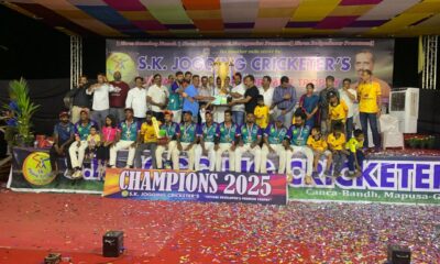 गोवा खबर:एस. के. जॉगिंग क्रिकेटर्सच्या क्रिकेट स्पर्धेत येथील *आभीर बाबा बार्देश* या संघाने आरव क्रिकेटर्स केपे या संघाला नमवून अजिंक्यपद प्राप्त केले. एस. के. जॉगिंग क्रिकेटर्सतर्फे...